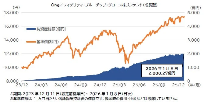 今回純資産総額が3,000億円を突破した「One/フィデリティ・ブルーチップ・グロース株式ファンド」は、主に成長が期待される企業の株式に投資するファンドです。2023年12月に設定されて以来、着実に運用実績を積み重ねてきました。