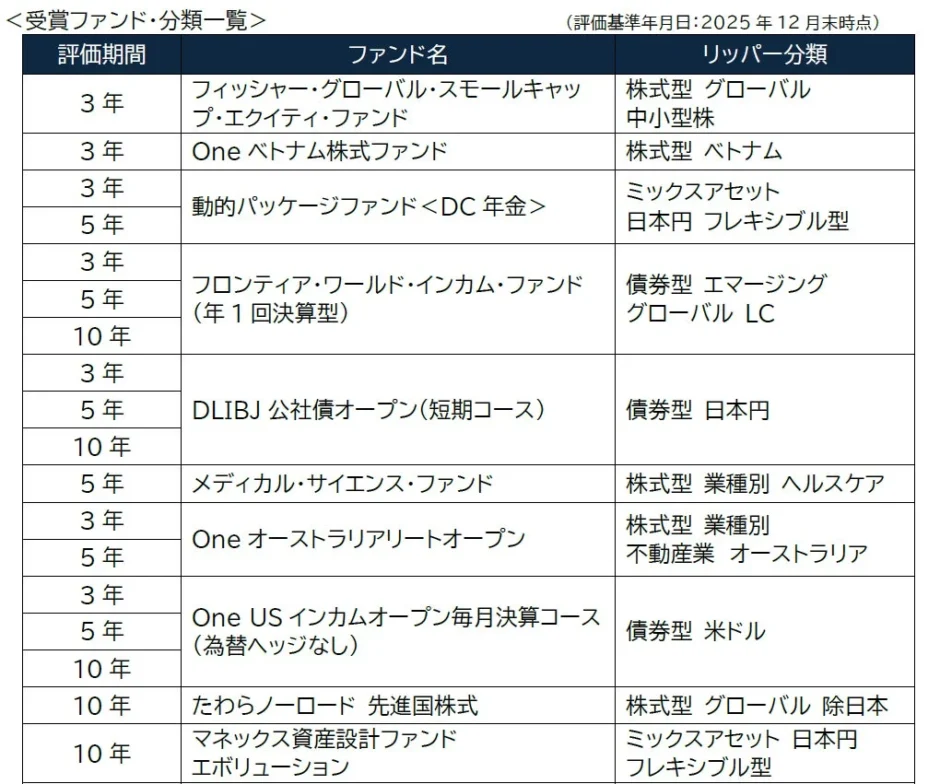 以下に、今回の受賞ファンドの一部をまとめた表を掲載します。