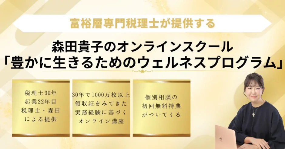 『豊かに生きるためのウェルネスプログラム』は、投資初心者が「お金の教養」を身につけ、経済的な安定と心の充実を実現するための貴重な機会となるでしょう。富裕層専門税理士の知見を直接学び、賢いお金の使い方や資産形成の基礎を固めることで、あなた自身の「自分スタイルの豊かさ」を見つける第一歩を踏み出してみませんか。
