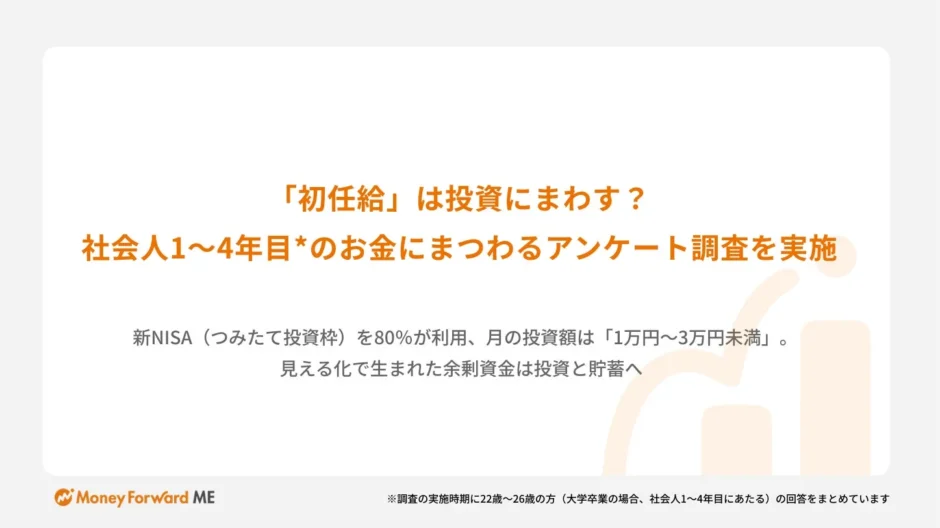 本記事で紹介した調査は、2026年3月20日~27日にかけて、22~26歳の『マネーフォワード ME』利用者1,000名を対象にインターネット調査で実施されました。この年代の回答者は、大学卒業の場合、社会人1~4年目に当たります。